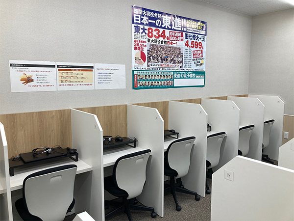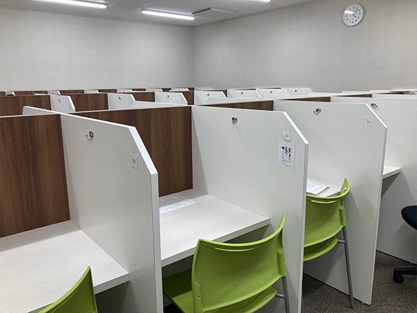 ブース型の自習室です。定期テスト前には多くの生徒が集中して学習しています。
