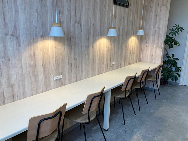 学習の合間に利用することができる飲食・小休憩スペースです。自動販売機も設置されています。
