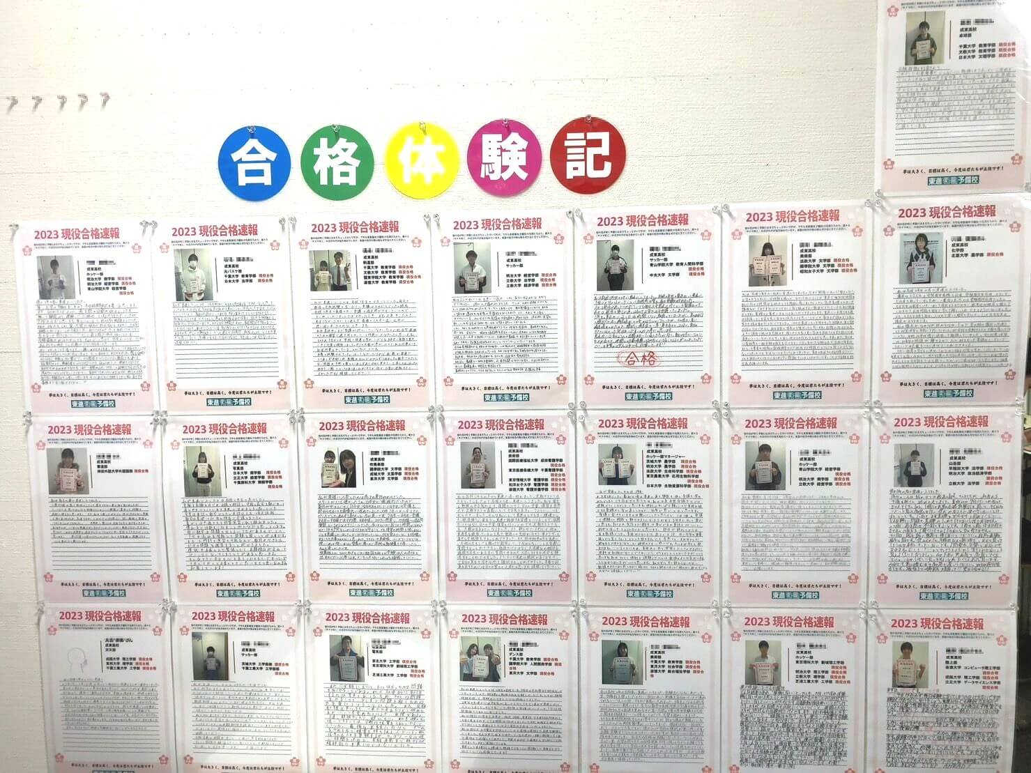 近隣の成東高校の生徒を中心に毎年多くの生徒が志望校合格を果たしています。自身の体験や後輩へのアドバイスを掲示しています。