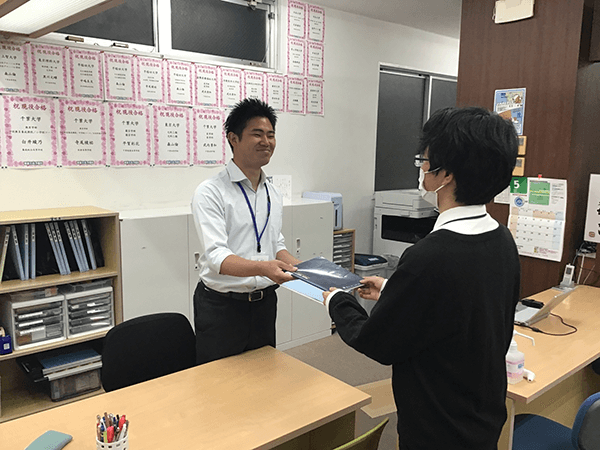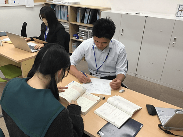 週に1度、担任スタッフは、生徒と面談を行っています。面談では、生徒と一緒に学習計画を立て、その進捗管理を行うなど、第1志望合格へのサポートをしています。